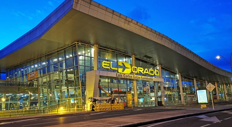 Llegada al Aeropuerto Internacional El Dorado en Bogotá.